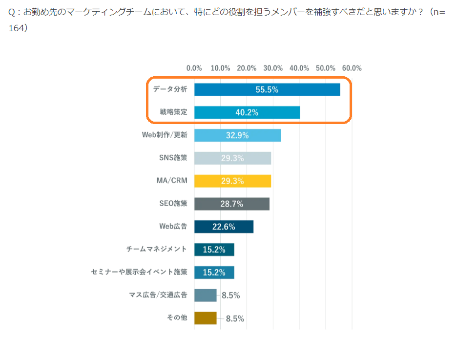 補強すべき人材の上位2項目が、「データ分析」と「戦略策定」。