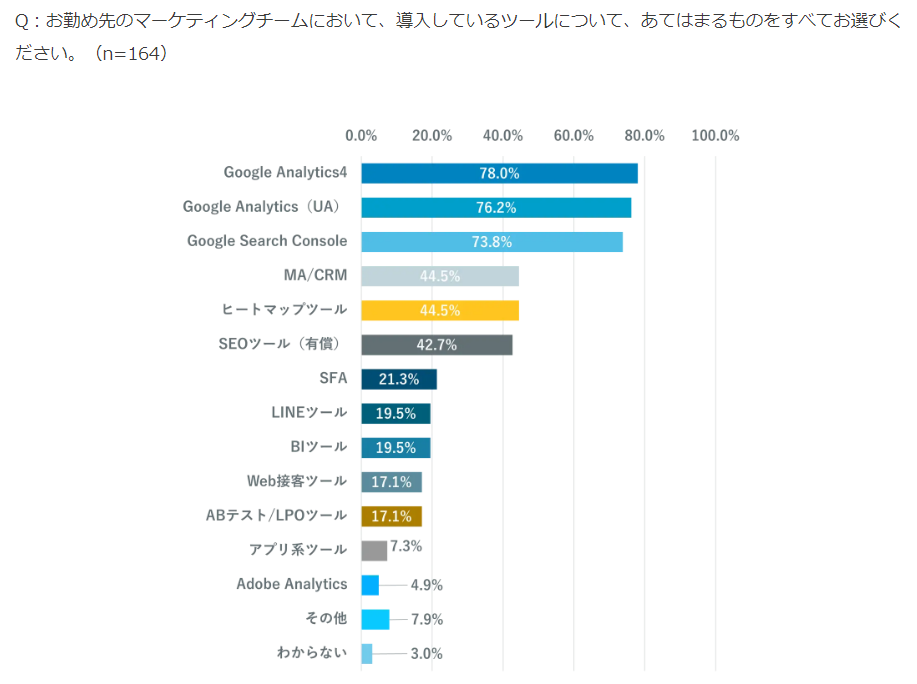 MA/CRM、ヒートマップ、SEOツールも4割以上が導入。